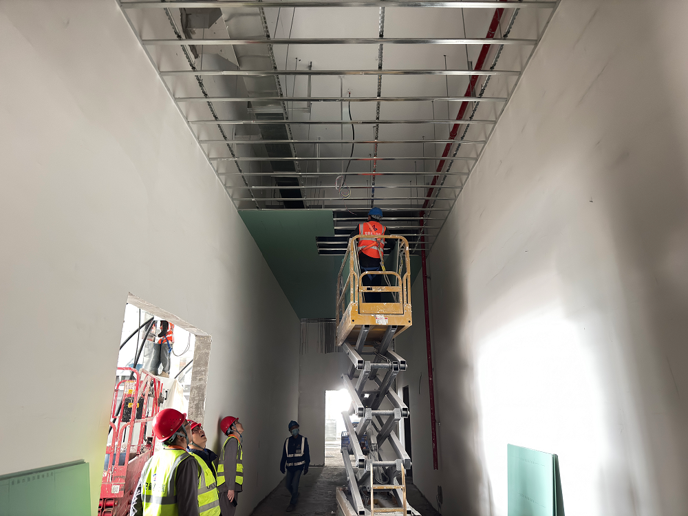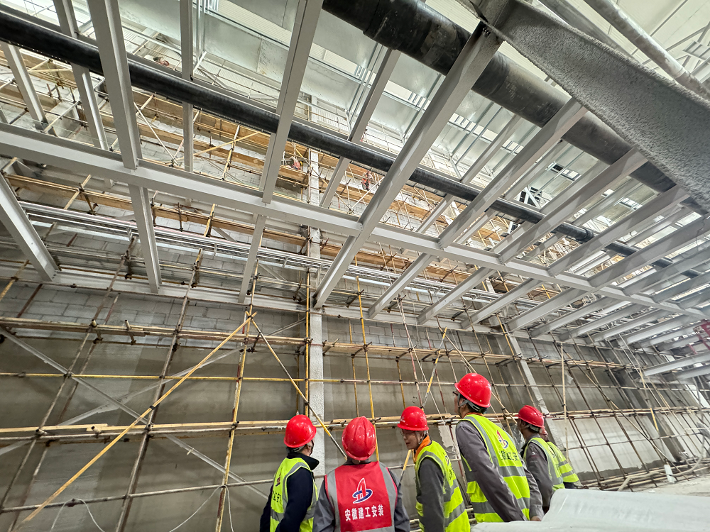 青海高原,氣候惡劣,環(huán)境艱苦,高寒缺氧,但這些困難并沒(méi)有阻擋項目部全體成員奮斗的步伐。施工現場(chǎng),機器轟鳴聲此起彼伏,工人們頭戴安全帽,身系安全繩,操作著(zhù)各種設備,熟練地進(jìn)行著(zhù)防水卷材敷設、吊頂板安裝、鋼筋綁扎、外墻抹灰、風(fēng)管安裝等作業(yè),每個(gè)環(huán)節都緊張有序,環(huán)環(huán)相扣。項目管理人員穿梭在各個(gè)施工點(diǎn),緊盯現場(chǎng)安全與質(zhì)量,及時(shí)協(xié)調解決施工中遇到的問(wèn)題,他們全身心地投入到工作中,用專(zhuān)業(yè)的素養和嚴謹的態(tài)度為項目建設保駕護航。