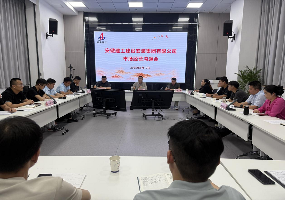 6月12日下午,建工安裝召開(kāi)市場(chǎng)經(jīng)營(yíng)溝通會(huì ),公司黨委委員、副總經(jīng)理劉曉剛、費廣清出席會(huì )議,市場(chǎng)開(kāi)發(fā)和投資部經(jīng)理許杰主持會(huì )議。
