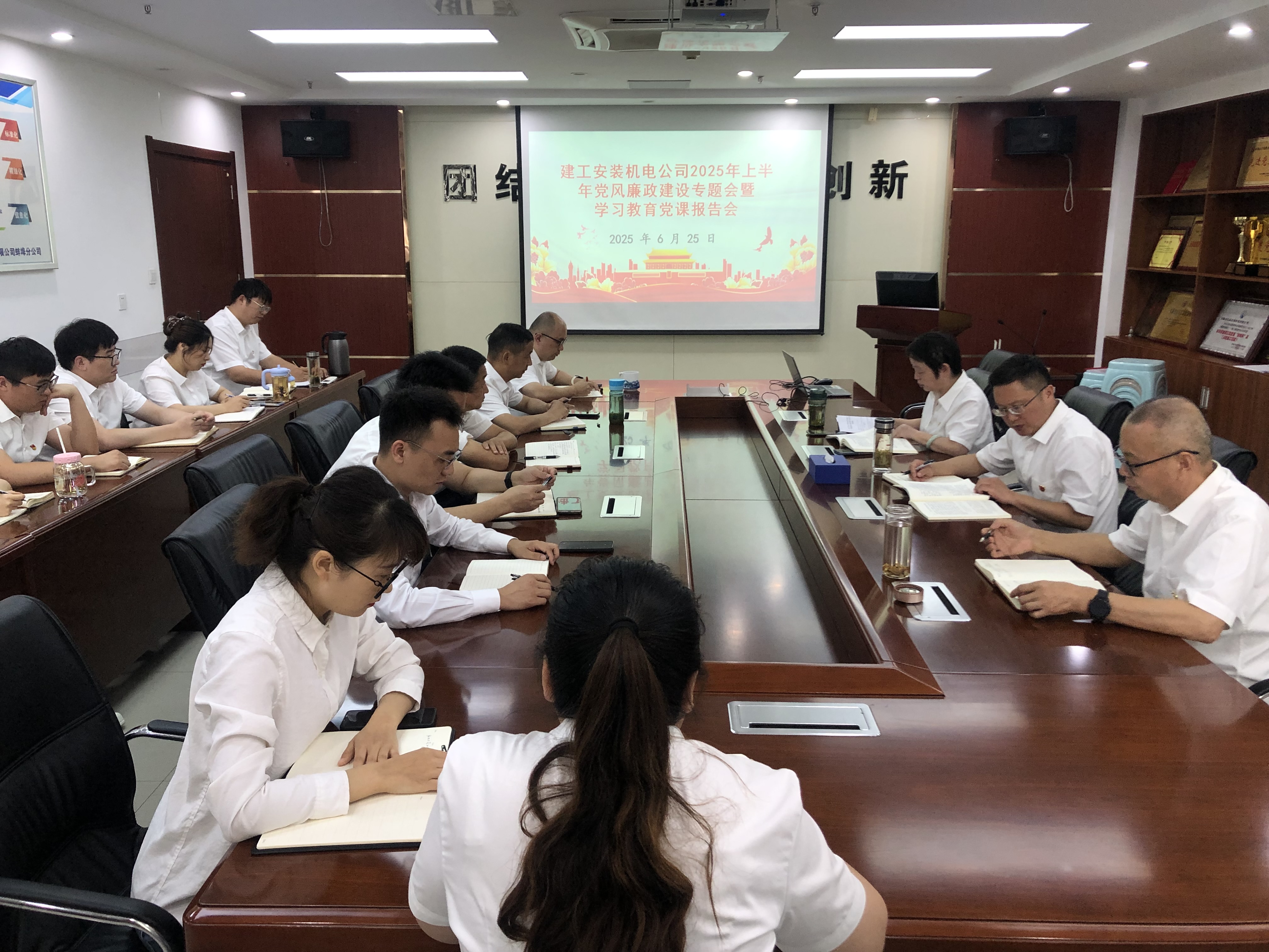 為慶祝中國共產(chǎn)黨成立104周年,扎實(shí)推進(jìn)深入貫徹中央八項規定精神學(xué)習教育走深走實(shí),6月25日下午,建工安裝機電公司召開(kāi)2025年度上半年黨風(fēng)廉政建設專(zhuān)題會(huì )暨學(xué)習教育黨課報告會(huì )。會(huì )議由黨支部副書(shū)記許素寒主持。