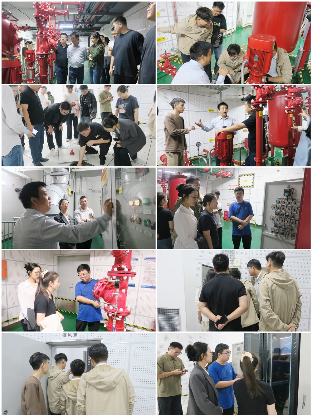 此次觀(guān)摩采取“現場(chǎng)看、聽(tīng)匯報、議亮點(diǎn)、找差距”的方式,先后深入項目雨水泵房、消防泵房、配電房等觀(guān)摩點(diǎn)。每到一處,觀(guān)摩人員均認真聽(tīng)取項目負責人關(guān)于項目建設、工藝創(chuàng )新、安全生產(chǎn)及成果轉化等方面的匯報,詳細詢(xún)問(wèn)項目推進(jìn)中的難點(diǎn)堵點(diǎn),并圍繞施工流程優(yōu)化、成本管控、質(zhì)量把關(guān)等關(guān)鍵環(huán)節展開(kāi)交流探討。其中,項目的BIM技術(shù)及智慧建筑技術(shù)應用、綜合管線(xiàn)布置、設備接地、泵體接地、橋架內線(xiàn)纜敷設等創(chuàng )新做法成為現場(chǎng)交流的焦點(diǎn),參觀(guān)人員紛紛拍照記錄、駐足研討。